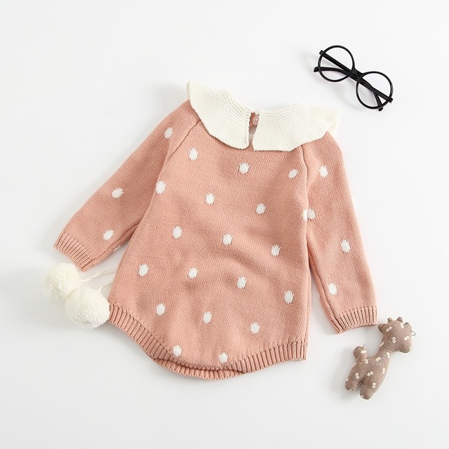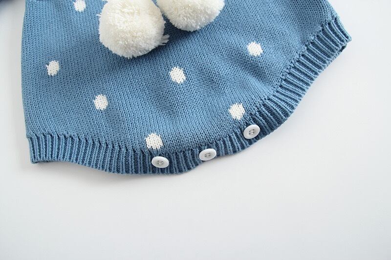 ラウンドスリーブドットニットベビーロンパース/カバーオール