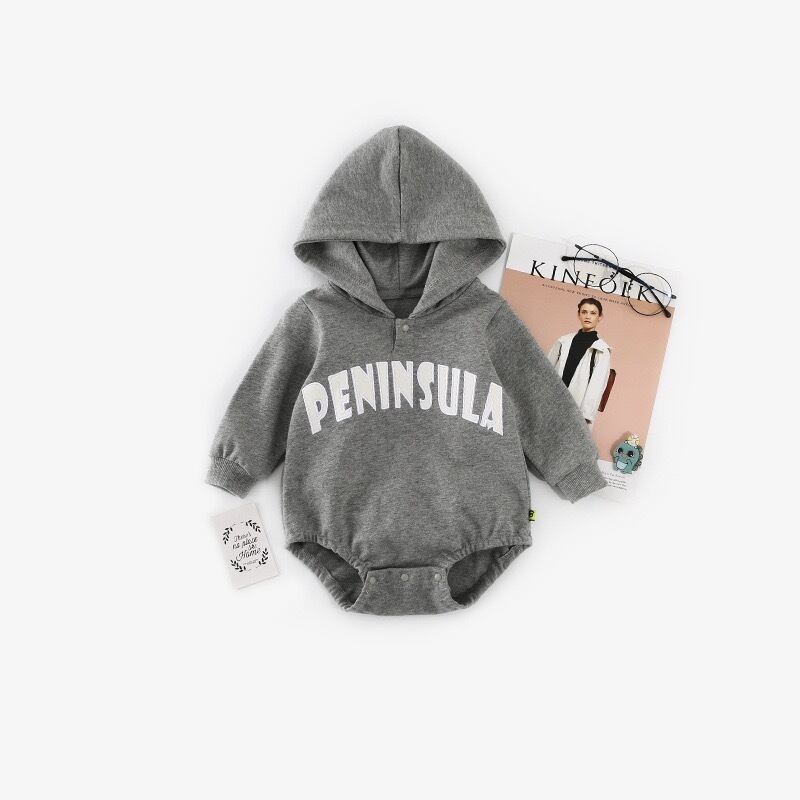 フード付きロゴプリントスエットベビーロンパース/カバーオール キッズ