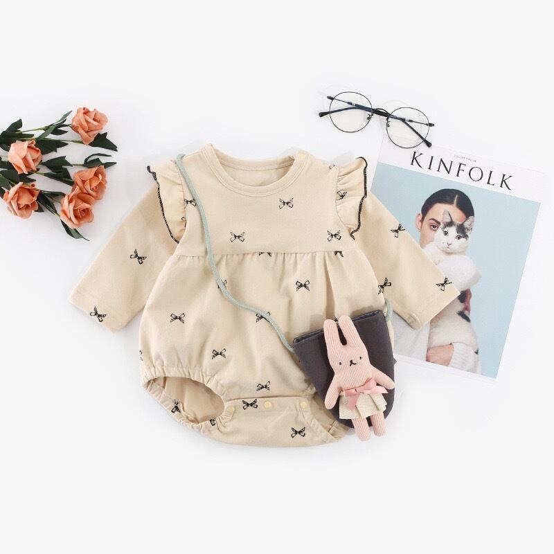 k0030 フリルショルダーリボンデザイン長袖ロンパース