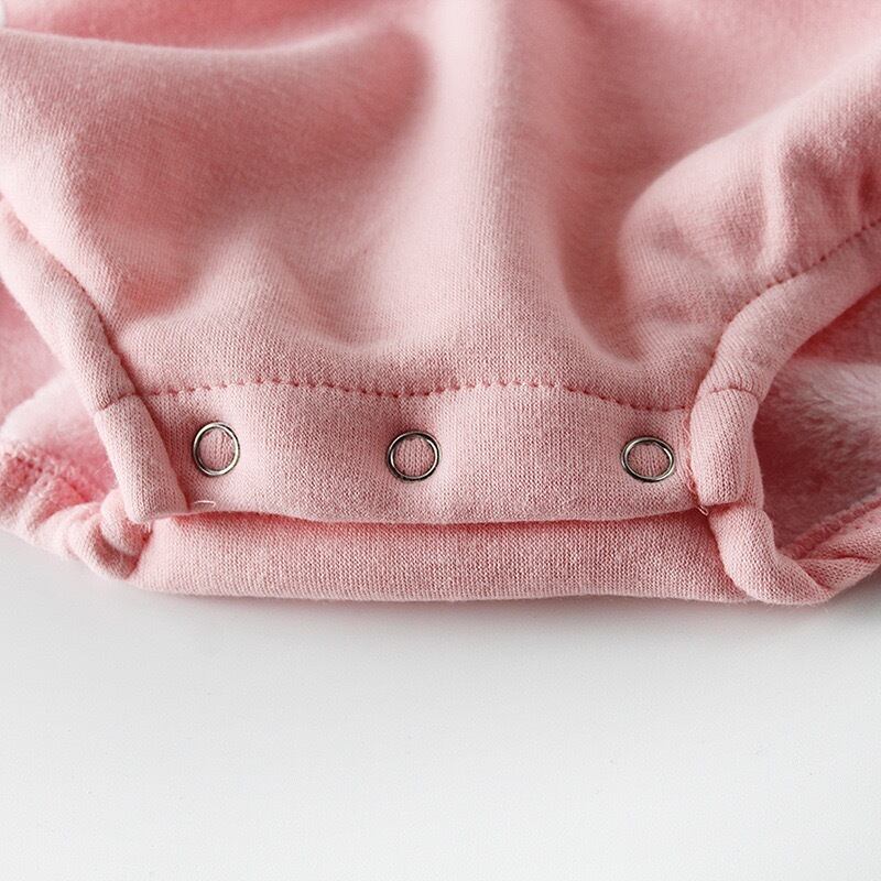 ヘッドリボンアクセ付き♡Marshmallowフリルスウェットベビーロンパース ピンク