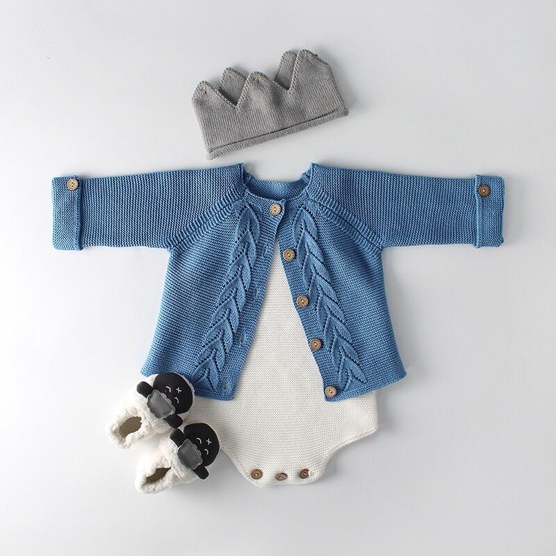 別売り シンプルホワイトサロペットロンパース/ブルーケーブルニットカーディガン