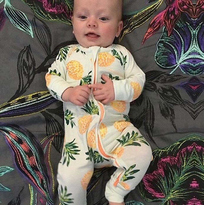 パイナップルカバーオール♡ダブルジップ/ジップカバーコットン長袖カバーオール イエロー/ブルー